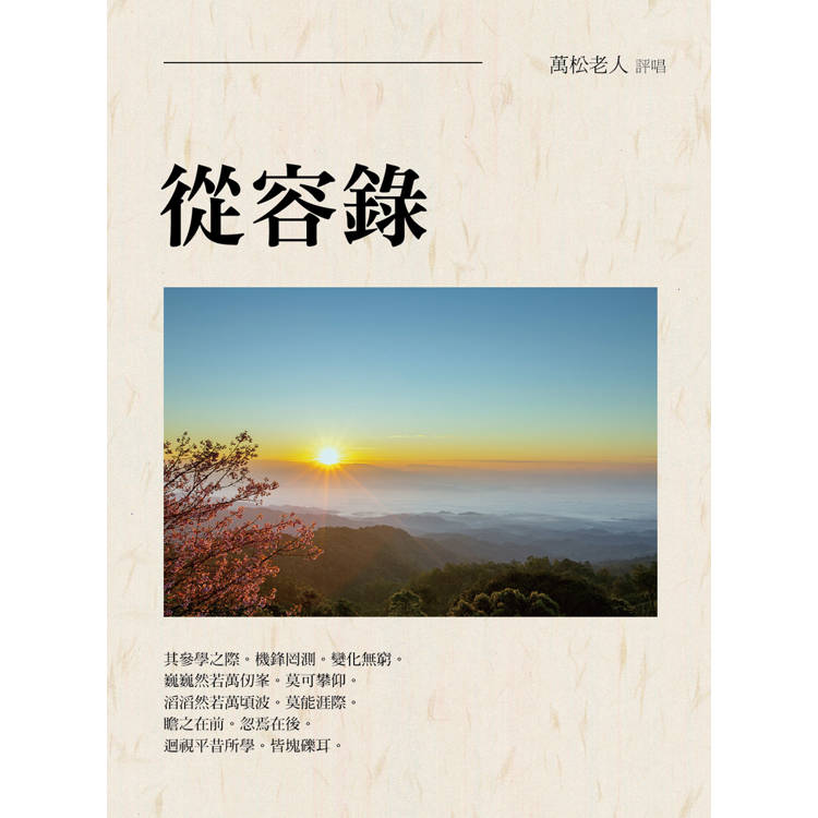 其中各則均分為示眾、本則(公案)、頌古(文中附加短評─著語)、評唱等四部分,示眾相當於《碧巖錄》之垂示,係說明一則之宗旨;本則為古則公案,敘述先人證悟之因緣;頌古為宏智以偈頌拈提,說明本則之宗旨;著語為將本則、頌古之語句加以解說短評;以評唱部分為本書重點。本書與《碧巖錄》併稱禪門二大寶典,《碧巖錄》屬臨濟宗系統,本書則屬曹洞宗系統。註疏有默紹之《從容錄頌解》一卷、松雲之《從容錄事略》十七卷、鼎三之《從容錄接觜錄》二卷、梵丁之《從容錄筆削》一卷等。(佛光大辭典)