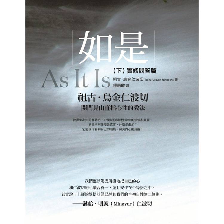 《如是》分為上冊【心要口訣篇】、下冊【實修問答篇】。在這兩本書中,祖古.烏金仁波切為了傳授諸佛證悟最迅捷的道路,在他生命中最後的兩年(1994年和1995年),將他一生實際應證佛法的經驗與靈修成就,直接引領禪修者認識自己的心。