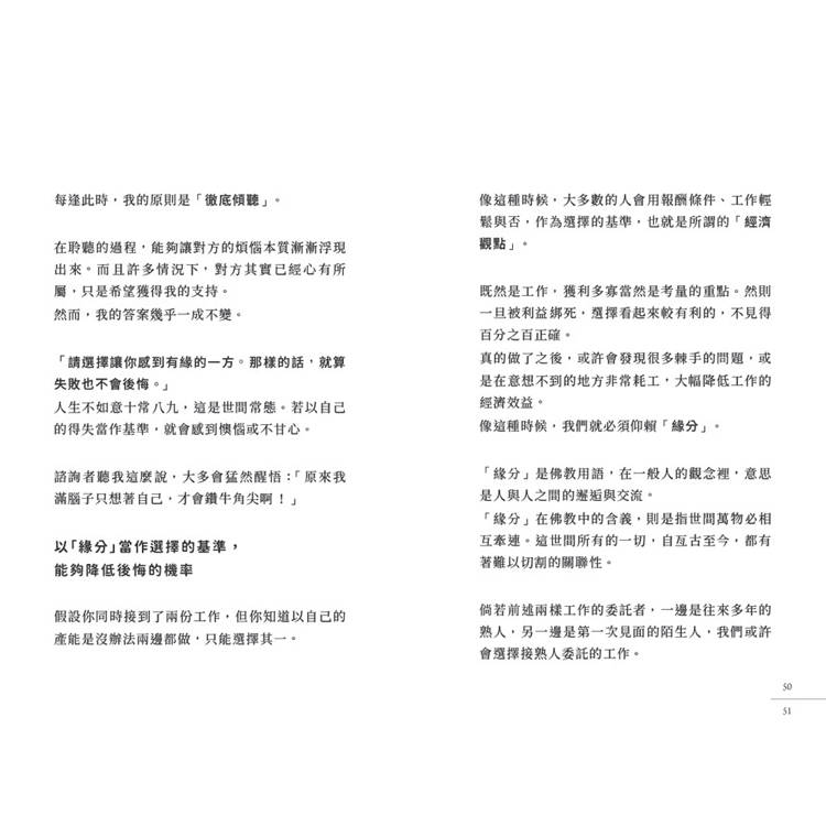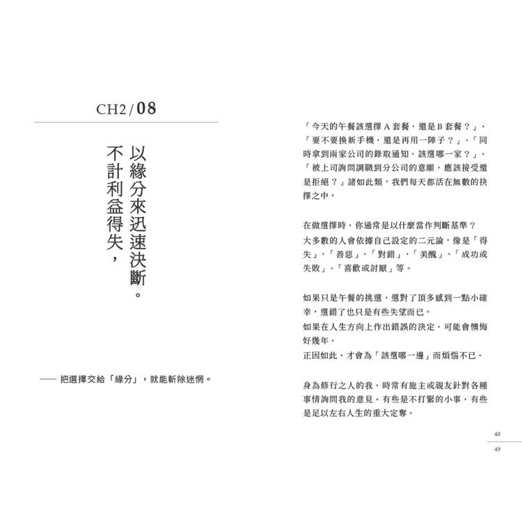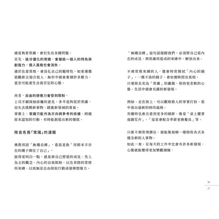 此外,書中還提供各種契機,讓讀者能重新審視那些折磨自己的執著與習慣,進而豁然開朗。