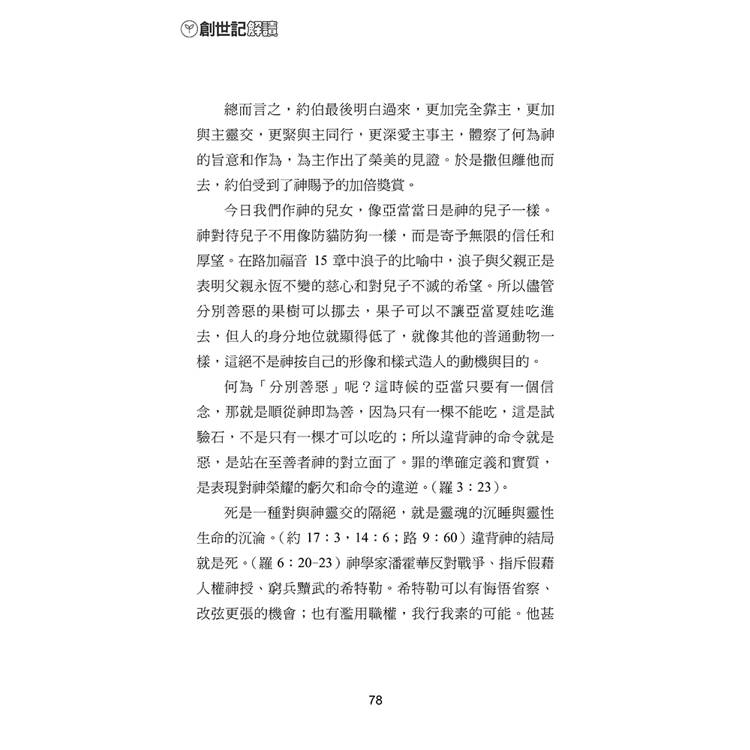 他不僅參考學者的見解,更結合親身牧養經驗與中國文化語境,使這卷古老經典在今日依然鮮活、貼近你我的生命。