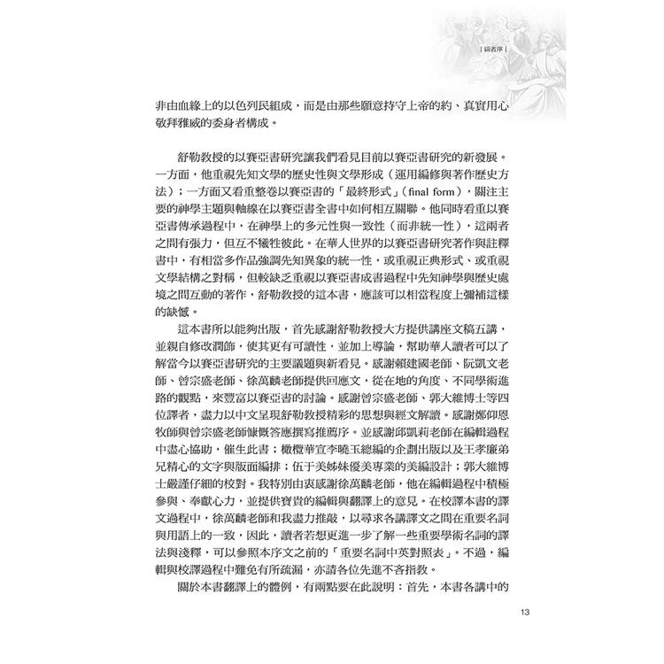 舒勒教授邀請我們大膽擁抱先知的犀利敘事與豐富的想像力,並勇敢投入且承襲這歷久彌新的美好信仰傳統,我則是邀請大家認真地研讀這本激發全新思考的好書!