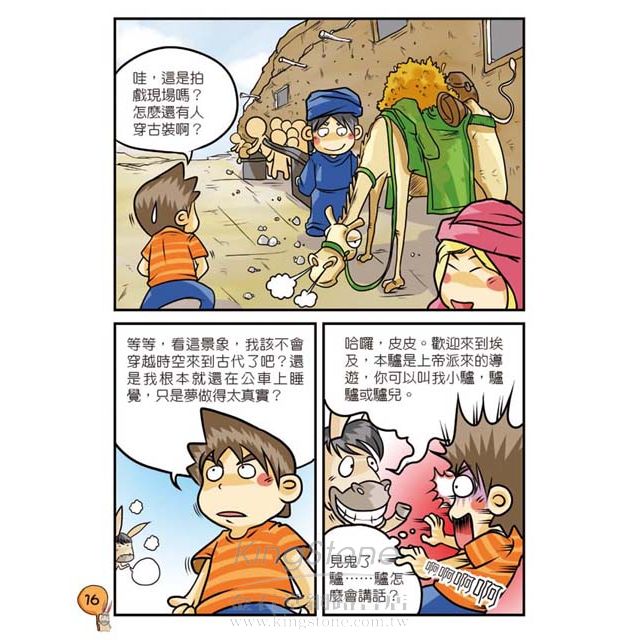 這時正要回家的皮皮,卻莫名其妙出現在聖經舊約的古埃及時代,還遇見了一隻有翅膀又會說話的驢子,嚇得皮皮不知該如何是好,在這趟古埃及的旅程中,皮皮究竟會遇到什麼事?他是否可以平安回家呢?