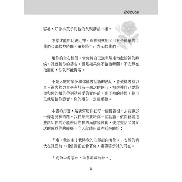 本書的用意正是要幫助你,在每一個禱告裏去認識那一條遇見神的路。