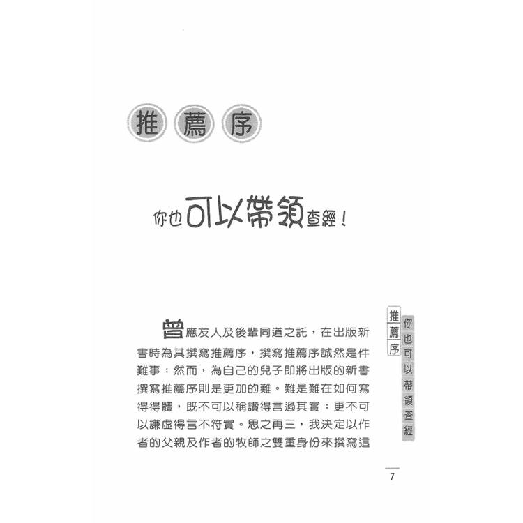 如果您本身是一個年輕人,或者您是一位作學生工作的輔導、傳道人,甚至您只是純粹希望自己的講台服事能多點活潑的氣息,這本書都可以帶給您些微正面的幫助,期待您會喜歡它!