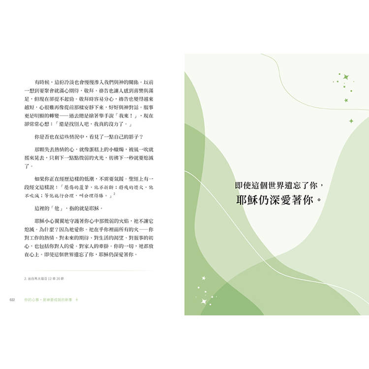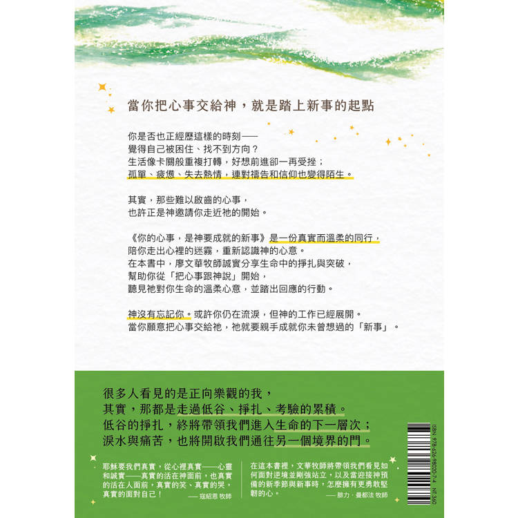 《你的心事,是神要成就的新事》是一份真實而溫柔的同行,