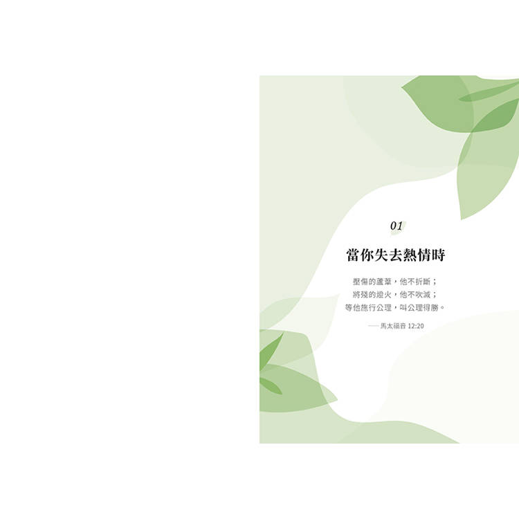 「壓傷的蘆葦,祂不折斷;將殘的燈火,祂不吹滅。祂必信實地帶來正義。祂不灰心也不沮喪,直到祂在地上設立正義。眾海島都仰望祂的訓誨。」
