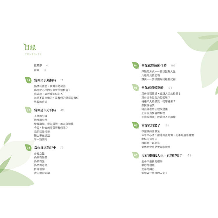 漸漸地,我學會放慢腳步,享受過程多過成果,享受關係多過目標,能和家人、和身旁的人們一同歡笑,這就是我最想抵達的目的地。說也奇妙的是,我越面對內在心靈,讓神更新,反而外在有更多突破,離目標變得更近。