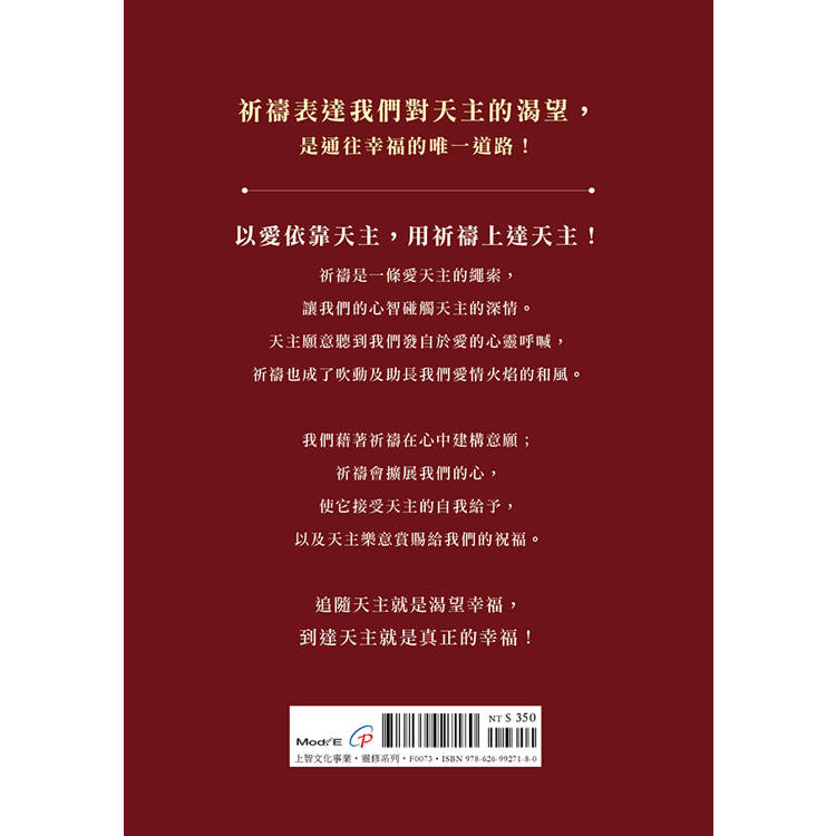 ◆ 培育祈禱的良好心態,增進靈修素養。適合信仰小組、慕道班、讀書會等成長團體共讀討論;為教友靈修、神父、神師、靈修指導者深具啟發意義。
