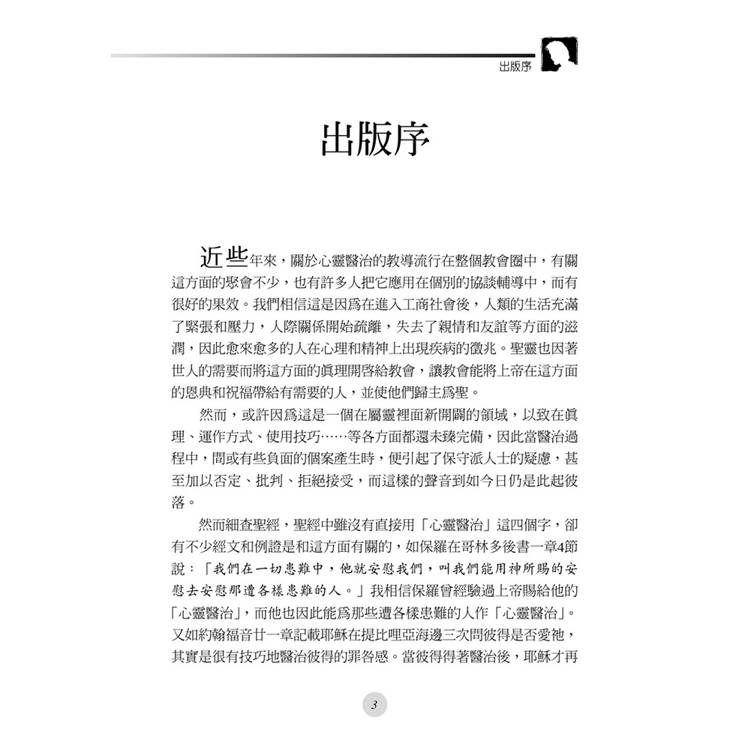 然而細查聖經,聖經中雖沒有直接用「心靈醫治」這四個字,卻有不少經文和例證是和這方面有關的,如保羅在哥林多後書一章4節說:「我們在一切患難中,他就安慰我們,叫我們能用神所賜的安慰去安慰那遭各樣患難的人。」我相信保羅曾經驗過上帝賜給他的「心靈醫治」,而他也因此能為那些遭各樣患難的人作「心靈醫治」。又如約翰福音廿一章記載耶穌在提比哩亞海邊三次問彼得是否愛祂,其實是很有技巧地醫治彼得的罪咎感。當彼得得著醫治後,耶穌才再一次呼召他:「你跟從我吧!」(19節)這樣的例證,在聖經中比比皆是。