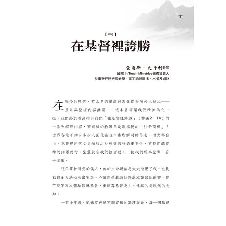 ◎這位蒙神所愛的僕人,他的生命與信息大大激勵了我,也挑戰我是否決心活出聖潔。本書描述信心與順服之於成聖過程的重要性,當我們聽從神的話語而行,聖靈就在我們裡面動工,使我們成為聖潔,合乎主用。