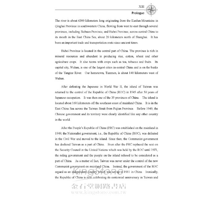 From my past reading experiences, it is rather difficult to read books written in English describing stories associated with Chinese names of places or persons such as those in this book. For the benefit of the readers, Chinese names of places or persons which are considered important in the context of the stories will be placed in the text right after the names in English when it appears for the first time.