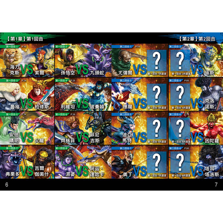 海克力斯VS索爾;孫悟空VS九頭蛇;魯格VS柏修斯;利維坦VS波賽頓;安倍晴明VS火龍;齊格菲VS菲尼吉斯;弗栗多VS吉爾伽美什;濕婆VS阿茲‧達哈卡……