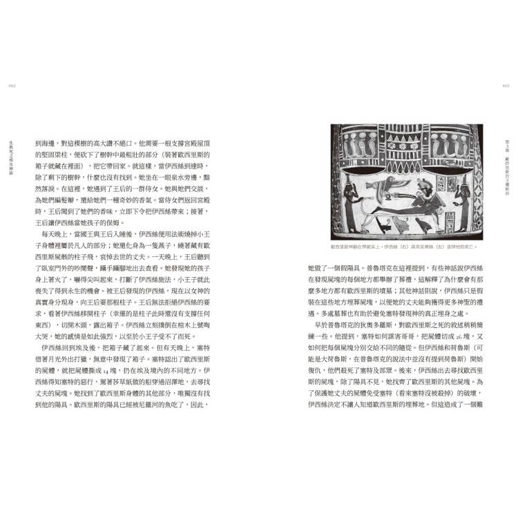埃及諸神是一個充滿活力、五花八門的群體,他們爭吵、打架、謀殺、交往,並可能死於年老體衰。他們也可化身為各種模樣,同時現身在不同地點,而真正的本尊卻遠隱空中;儘管他們的形象多樣,但他們既非無所不知,也非無所不在。本書作者從來源散亂的資料中,為讀者整理出較為清晰的古埃及樣貌,並系統地介紹古埃及神話。搭配精美的插圖,以及來自神廟及墓室的浮雕與壁畫,我們得以從古埃及人的視角,理解他們所處世界的秩序、對死後世界的想像,並且認識極具個性的眾神: