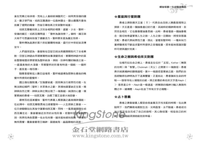 2.七十八張英式精緻油畫繪風塔羅牌 除了以偉特牌為範本的圖案,大阿爾克納牌的牌面還包括星座符號、行星符號、希 伯來文、喀巴拉教生命之樹等等,豐富的神秘學意象,有助於讀者培養並強化占卜 直覺。