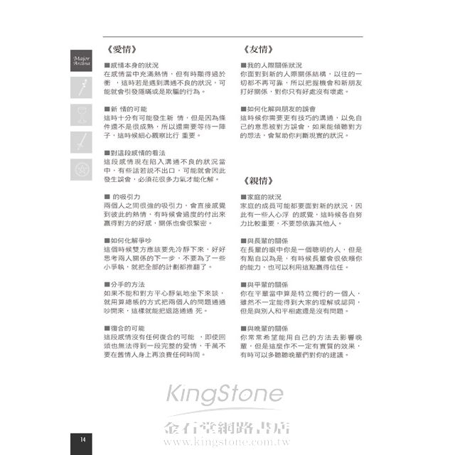 第二,連玩家害怕的「逆位置」,書中也詳盡的記載,絕對讓看書的讀者,可以找到你心中的疑問,得到最佳的占卜結果。