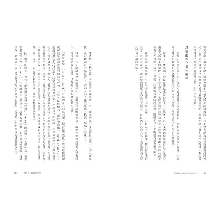 在本書更進階的章節中,則涵蓋魔法祈禱儀式與源自夏威夷的古老魔法儀俗「乎那」(Huna)等高階療癒顯化技術,著重引導讀者將療癒能量深入潛意識中,以落實人生願景,甚至創造奇蹟。最重要的是,本書將教導讀者如何安全地使用靈擺——學會樹立靈性保護圈的技巧是極為必要的,可避免在探索潛意識或與神聖存有連結的過程中,受到負面能量或存有的干擾及影響,而無法獲得至為高善的指引。