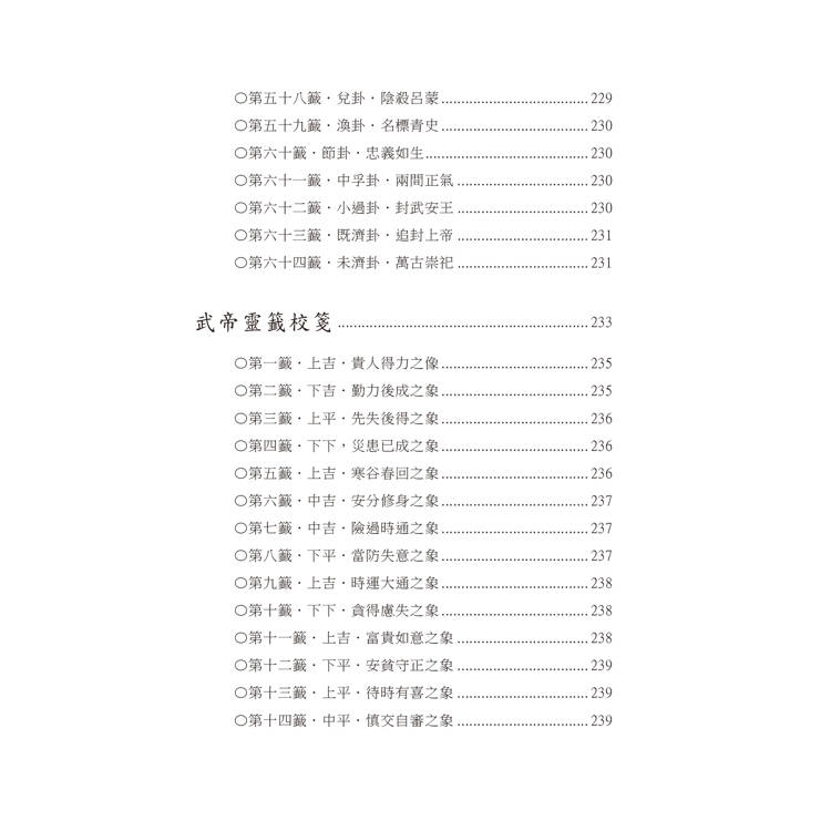 今此書既剞劂,非惟考鏡三籤之淵藪,更可窺見千年關帝信仰之脈絡。捧卷展讀,明周易福禍消長之義理;披章研閱,見中華民俗信仰之真諦。雖未敢方駕先賢校理之勳,拾遺補闕,亦庶幾無愧於述作之林矣。