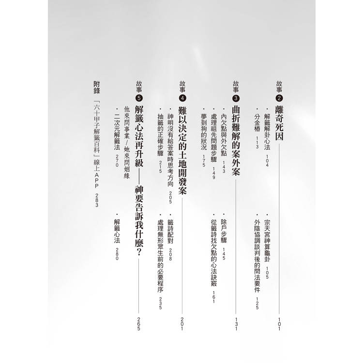 統合邏輯歸納、思考方向,諸多「從籤詩找欠點的心法訣竅」、「二次元解籤法」、「問事心法」、「解籤心法」……絕對是問神問事的必備寶典!