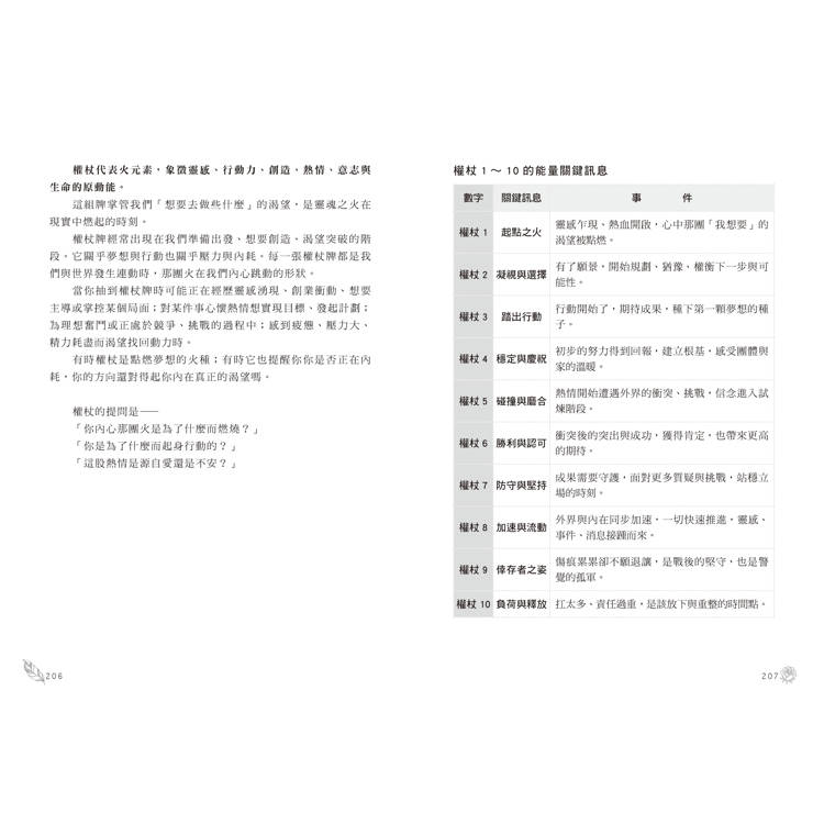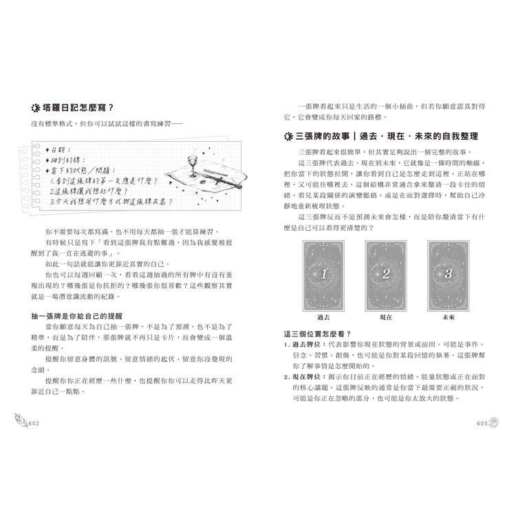 ‧透過故事式敘述,讓塔羅牌不再只是牌義,而是一段能以情緒理解、以內在體會的生命旅程,即使是塔羅初學者也能輕鬆讀懂每張牌的核心訊息。