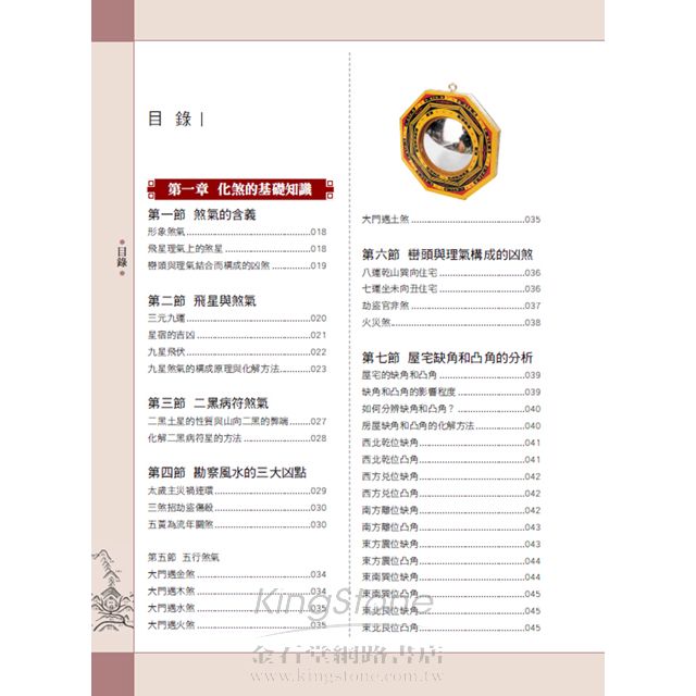 全書採用通俗易懂的文字與手繪加實景拍攝圖片的形式,讓讀者隨時隨地都能快速檢測風水煞氣。並有效運用化解方法,輕鬆營造開運招財、平安納福的居家風水。只要你跟隨本書的指導就可以自創好運、催財、增夀、添福、高升的好風水…。