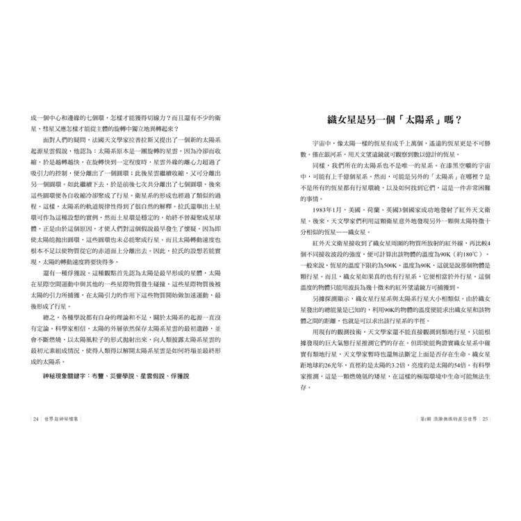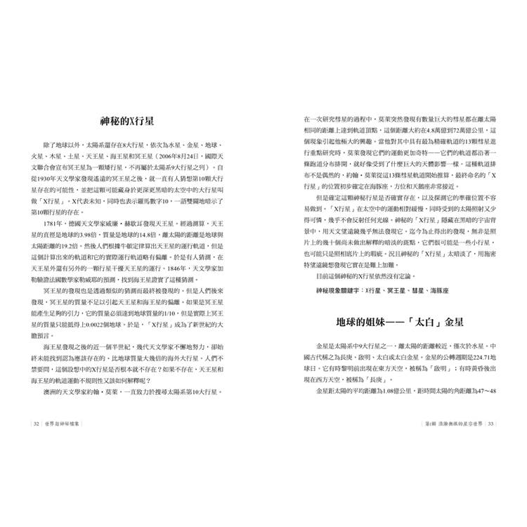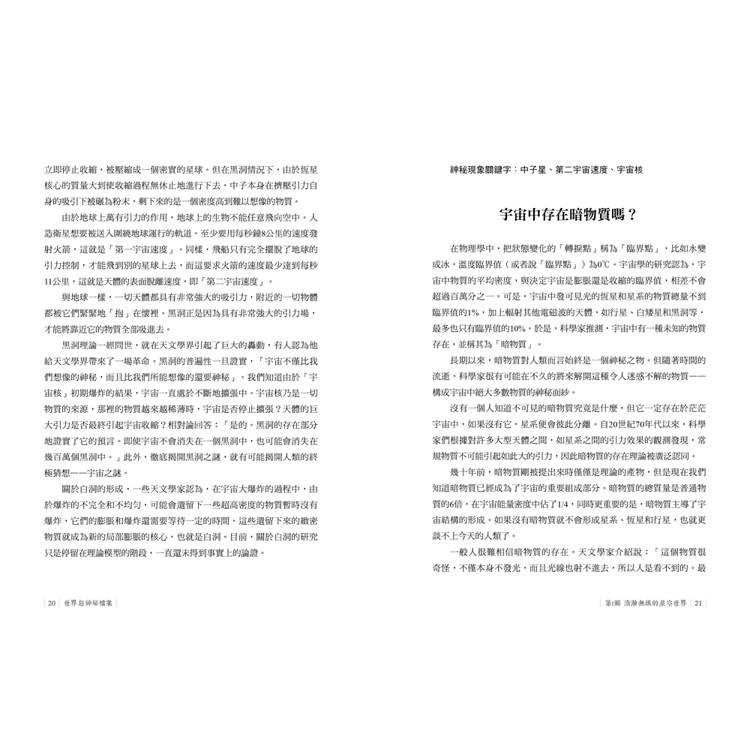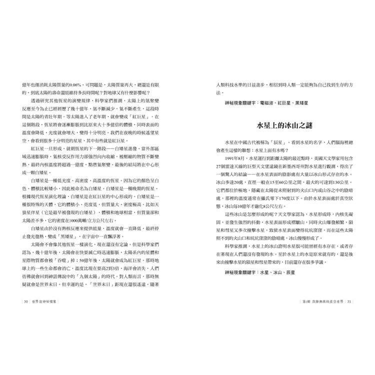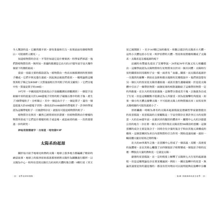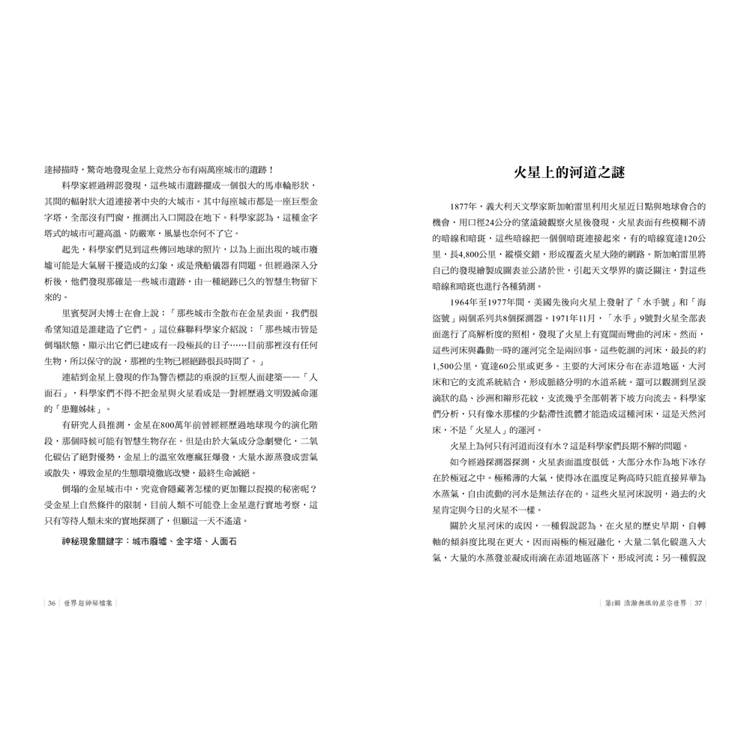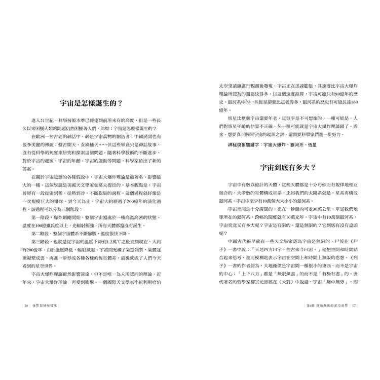 各種神秘現象,內容涵蓋天文、地理、文化、科技、生物等方面,