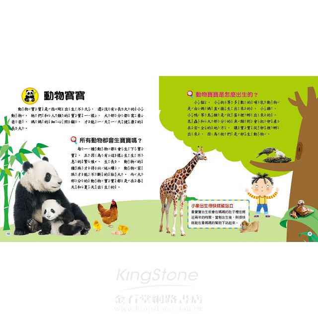 1、精選100多道與動物相關的問題,包括動物的外觀、習性、行為、生存方式等等,讓孩子對動物產生好奇,並且建立起最基本的對動物生態的認識。