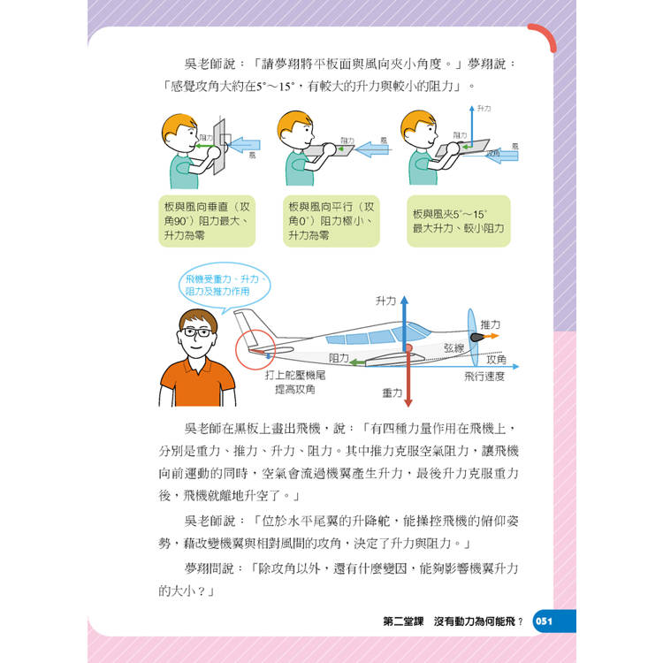 老師說:「我們在這一章〈飛行世紀∼動力飛行〉要探討人類學習飛行過程經歷的故事。」