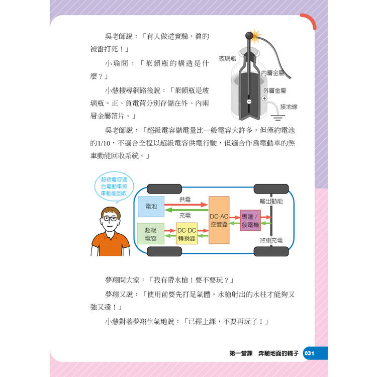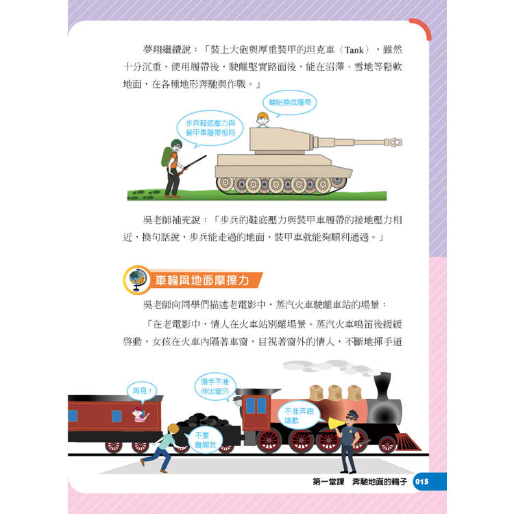 如同書中所設定的四位活潑的主角:吳老師、夢翔、小瑜、小慧,在一個高度互動的教室中共學輪子、飛機、船舶的發明歷史。這四位主角像極了從前童言無忌的我們,偷偷在心裡天馬行空地問,而本書作者—─他真的是一位博學的好老師,總能善加引導,捕捉到學生大大小小的問題點,令人讀起來不禁驚喜與期待:「啊!這也是我曾經想問的問題啊!」「為什麼?為什麼?」「接下來呢?」「原來這我也能學得懂!」