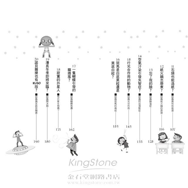 ◎令人熟悉的14個怪咖加上「三隻眼」老師在怪咖教室裡討論20個啟發孩子好奇心的科學問題!