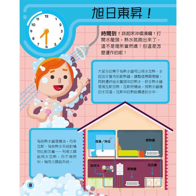 本書藉由互動插圖與有趣的活動,解釋工程在日常生活中的角色,例如食物冷藏、馬桶沖水等。