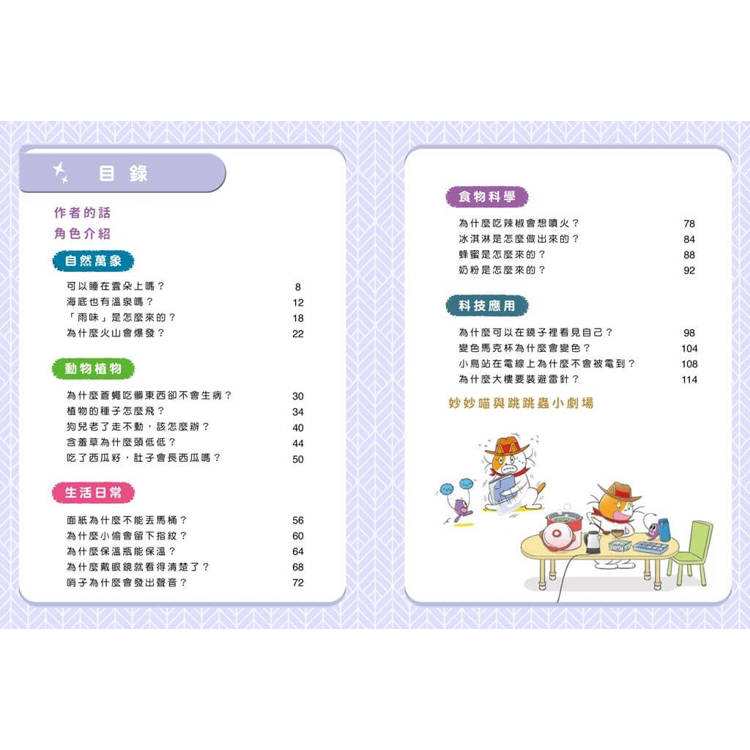 妙妙喵和跳跳蟲的漫畫故事,把真實生活情境搬進書裡,讓孩子忍不住想追問「為什麼?」