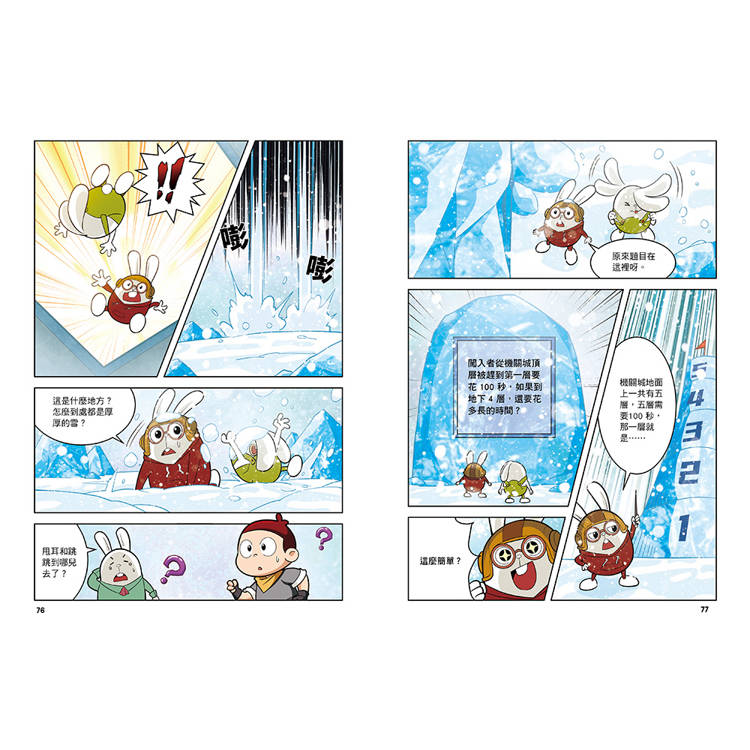 可愛角色+精彩劇情!阿 U 與三隻兔子帶領孩子穿越古今,激發閱讀興趣。設計上貼近小學階段數學能力,文字、生動漫畫畫面、闖關情節,皆為孩子自主閱讀友好。