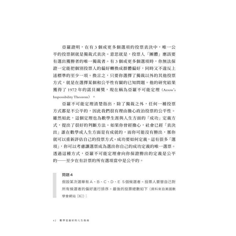 4. 鑑於亞羅不可能定理,自己定義什麼是成功
