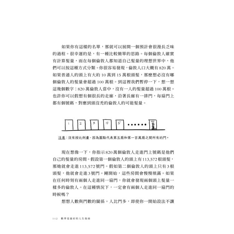 很少有東西像數學一樣美麗又迷人,道破人生,對人生目標的追求來說如此重要。然而,我們在學校裡的數學教學結果並不圓滿,也沒能讓成年人對探索數學奇事發生興趣。我們助長恐懼,而不是愛。這本書文筆簡練,讓數學朝氣蓬勃、容易理解,沒有妥協,但富有魅力、清楚明瞭、優雅風趣。這本書不僅所有學生都該擁有,成年人也應該人手一本。讀者不但會心存感謝,還會邊讀邊笑。