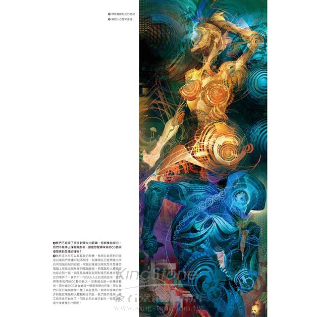 本書專訪世界20位從事各領域藝術創作的藝術家,內容融入多種風格的創作,您將在這些藝術家身上發現他們並非只是單純地利用便利的繪畫方式去完成一個個形式化的人物,充滿個性的設定與自我風格的顯現,確立了他們對於數位藝術從未停歇的探索精神以及充滿激昂的情感。