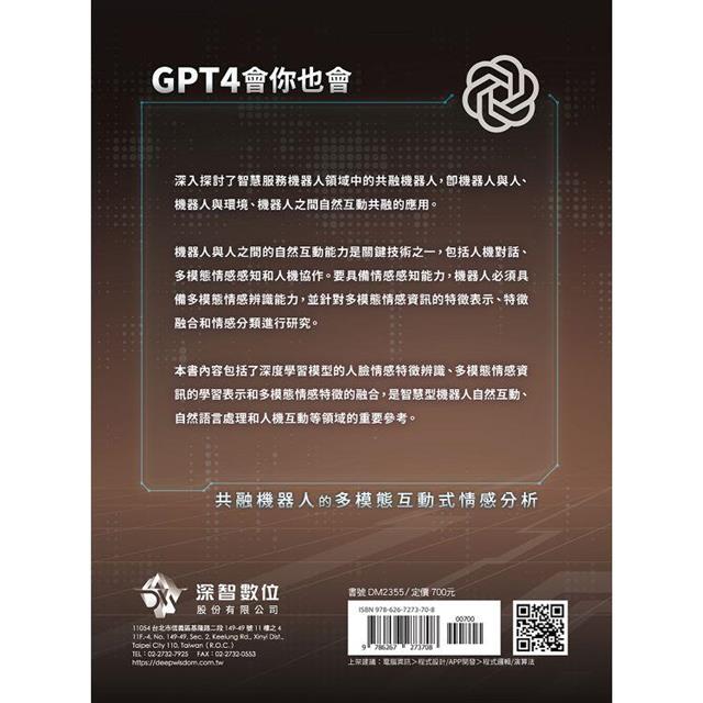 深入探討了智慧服務機器人領域中的共融機器人,即機器人與人、機器人與環境、機器人之間自然互動共融的應用。機器人與人之間的自然互動能力是關鍵技術之一,包括人機對話、多模態情感感知和人機協作。要具備情感感知能力,機器人必須具備多模態情感辨識能力,並針對多模態情感資訊的特徵表示、特徵融合和情感分類進行研究。本書內容包括了深度學習模型的人臉情感特徵辨識、多模態情感資訊的學習表示和多模態情感特徵的融合,是智慧型機器人自然互動、自然語言處理和人機互動等領域的重要參考。