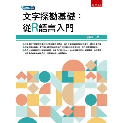 本書針對中文透過R語言操作基礎的文字探勘,從人文社會科學領域闡述編程的概念,可使自學者更容易掌握文字探勘的技能。內容包含了解R、文字資料的清理、斷詞和詞頻、情緒分析和字典法、tf-idf值的計算和應用、主題建模、機器學習、詞的關係、語意網絡的社會網絡分析,以及網站資料抓取等。