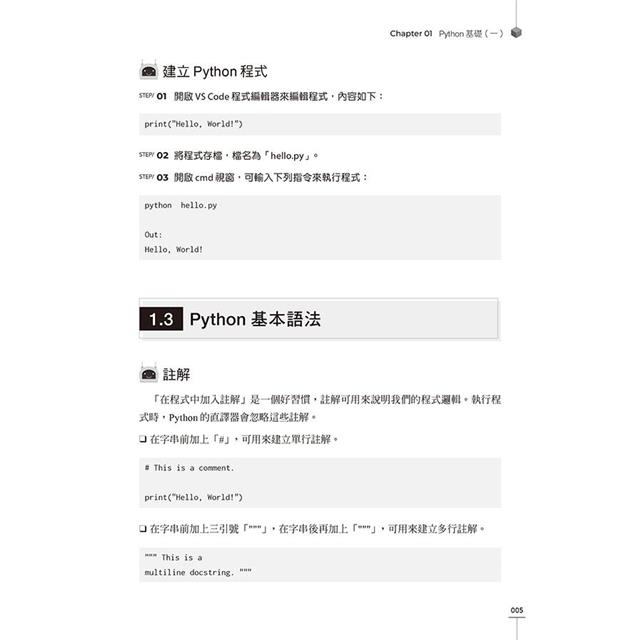 ✦利用完整的程式範例,深入淺出說明Python程式設計