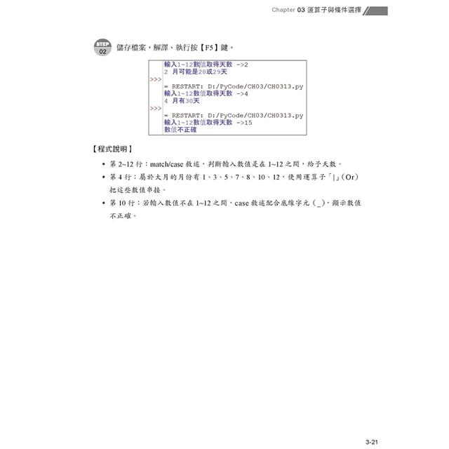 ▶每個章節有豐富的範例,配合 Python Shell 的互動交談,更能得心應手