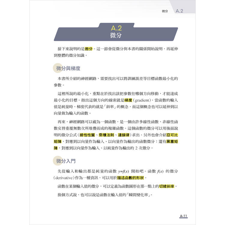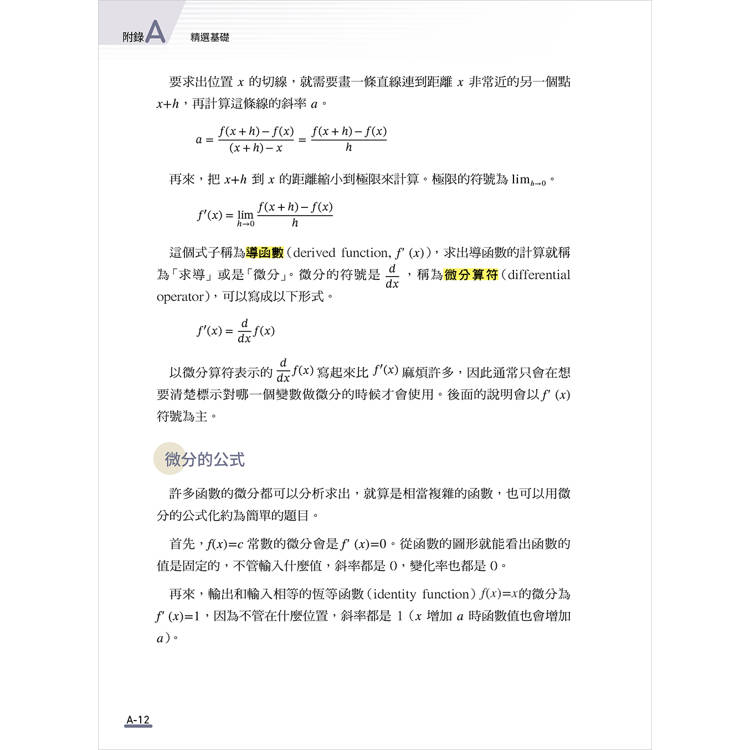 把學校的數學課忘光了也不用怕!附錄彙整深度學習的必要數學知識,有疑問隨時翻閱,回頭立刻跟上大師講解。
