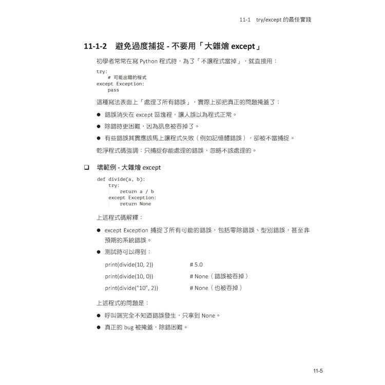 11-1-2 避免過度捕捉 - 不要用「大雜燴 except」