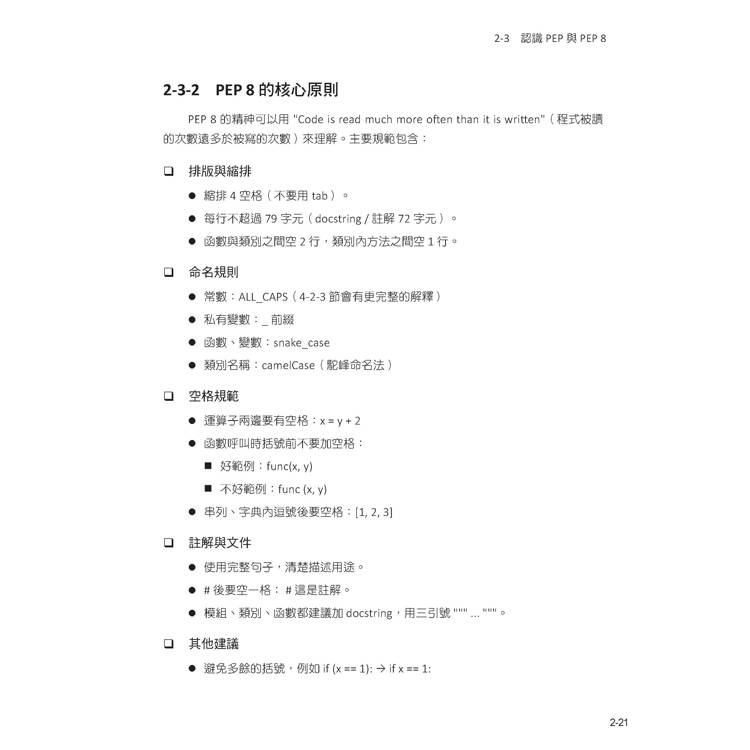 2-3-3 其他與Clean Code 相關的PEP 條目