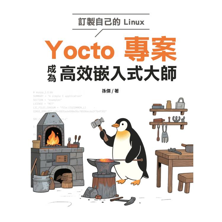 本書共分三部分,共九章,系統介紹 Yocto 專案的核心知識與實戰應用。第一部分(第1至第3章)說明 Yocto 專案的基本架構與工具鏈,介紹中繼資料結構、BitBake 建構引擎、配方語法與 Poky 分層機制,並說明常見映像類型與建構流程。第二部分(第4至第6章)以 Raspberry Pi 為範例,說明 BSP 的建立、自訂映像建構、軟體堆疊配置與 SDK 生成,協助讀者實作從原始碼到可開機系統的完整流程。第三部分(第7至第9章)以 NXP i.MX 8M Plus 平臺為案例,進一步介紹工業級開發場景中常見的核心裁剪、裝置樹設定、驅動整合、啟動管理與元件最佳化,並涵蓋 AI 模組整合與部署流程。全書以實作為導向,從模擬器、開發板到商用晶片,建構出一條從入門到應用的 Yocto 學習路徑,適合需要掌握系統建構、驅動整合與平台客製化的嵌入式開發者。