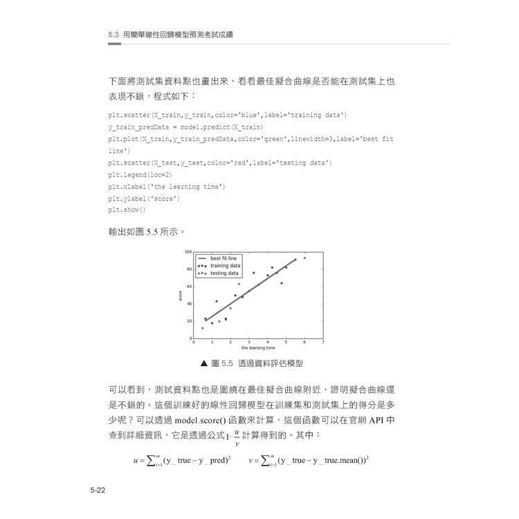 5.3 用簡單線性回歸模型預測考試成績