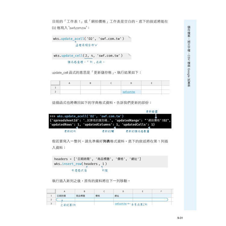 》第 8~10 章:設計網路爬蟲與 Google 試算表操作