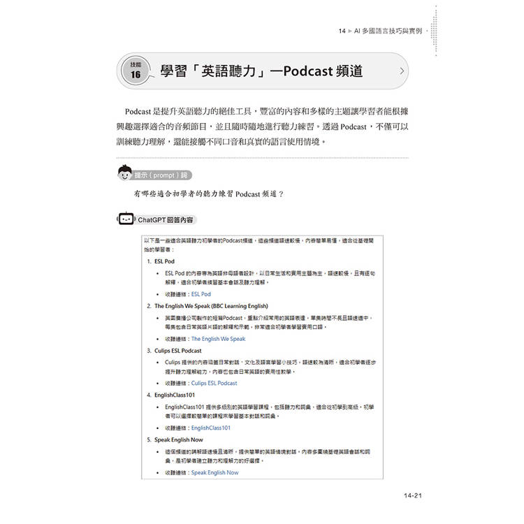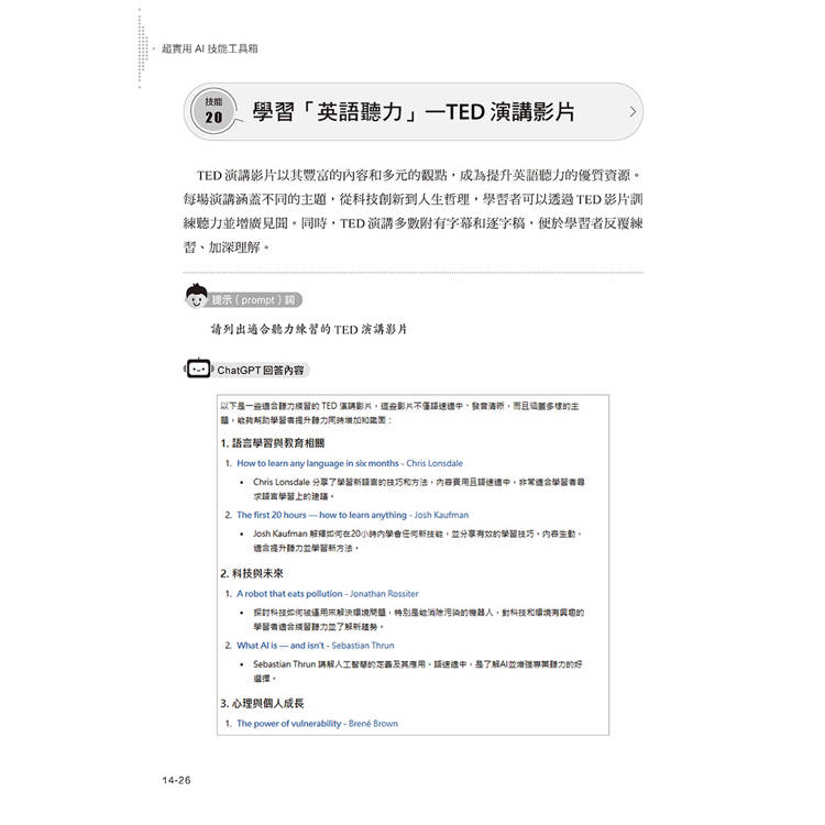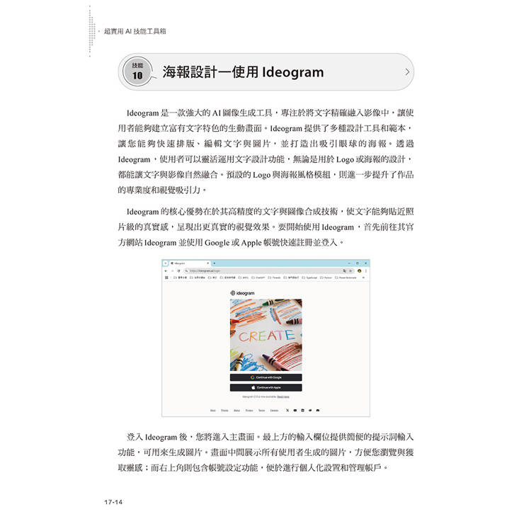 每項技能皆是精心挑選,並搭配步驟、應用場景和實用小技巧,讓還是AI新手的您,能迅速掌握AI在各個層面的寬廣應用,幫助您在AI時代中高效運用科技,實現生活與工作的雙贏。