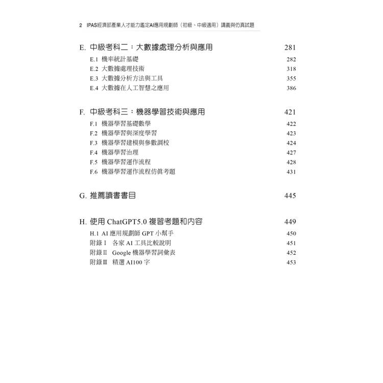 透過本書,學習者可循序漸進地建立知識架構,從人工智慧與機器學習核心概念,到AI規劃與應用的實務操作,皆能有效掌握。同時,結合作者設計的ChatGPT小助手,考生在練習題與模擬測驗中可獲得即時引導與答題技巧,提升學習效率與熟練度。