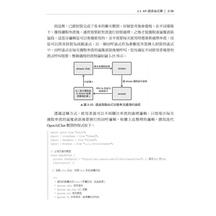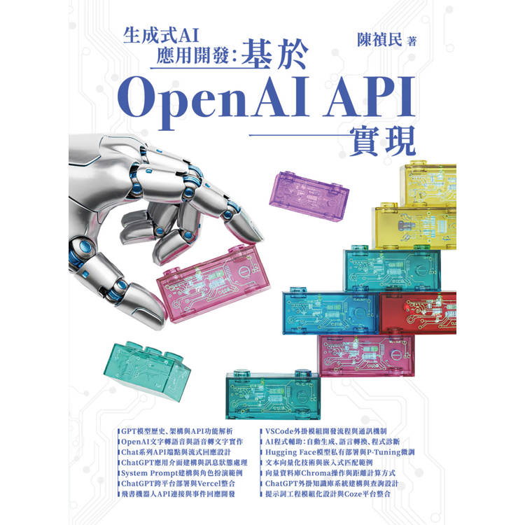 目前市面上與AI 相關的圖書大部分介紹的是使用AI 應用,例如怎麼使用ChatGPT 寫文章,如何組織Prompt 等,少部分圖書則涉及基底模型訓練。前者內容較為淺顯,容易被替代且不具備時效性,而後者有較高的門檻,更適合專業演算法從業人員閱讀。對於承上啟下,既相容前兩者的內容,又詳細介紹各式生成式AI 應用程式開發的圖書,市面上仍然比較欠缺。本書希望可以補全這部分資料的不足,幫助更多想從事AI 行業的人入門。