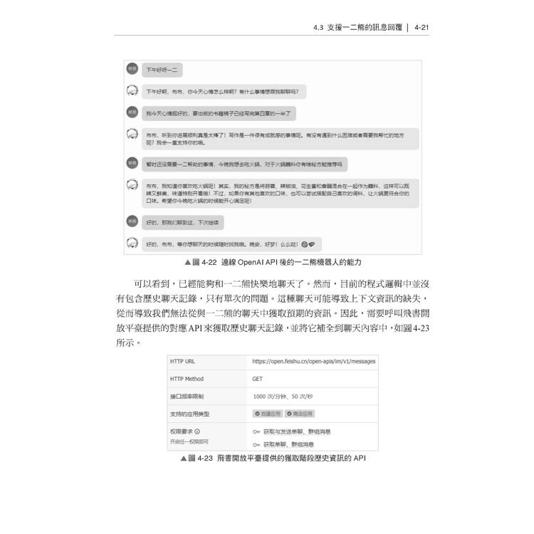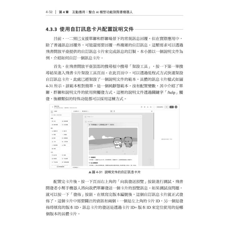 ▌第4 章 互動應用:整合AI 模型功能到飛書機器人