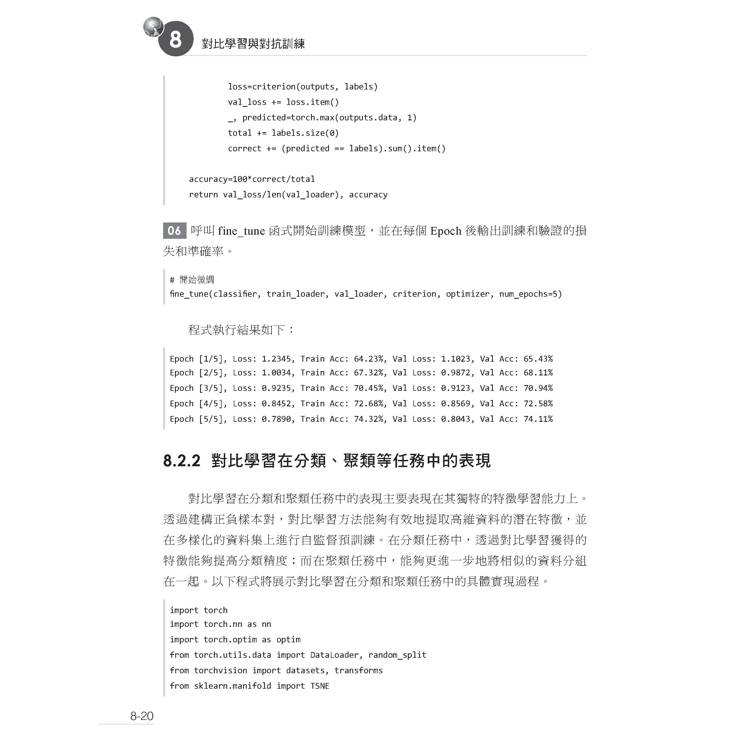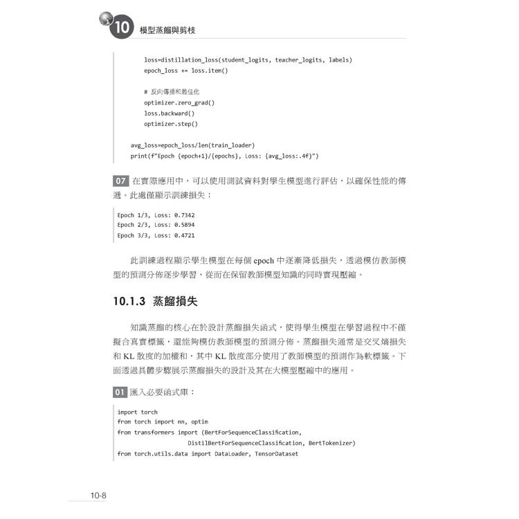 第11、12 章為實戰章節,將透過完整案例展示模型訓練和微調的流程,包括資料準備、分層凍結、超參數調節等關鍵步驟,並介紹量化與蒸餾等推理最佳化方法。